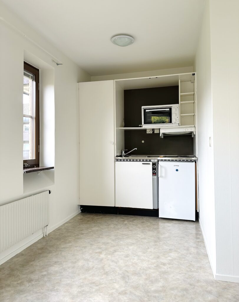 I det lilla pentryt  får du plats med det du behöver. Här kan du enkelt få plats med ett matbord  upp till 2-4 platser. Finns spisplatta & mindre kylskåp.