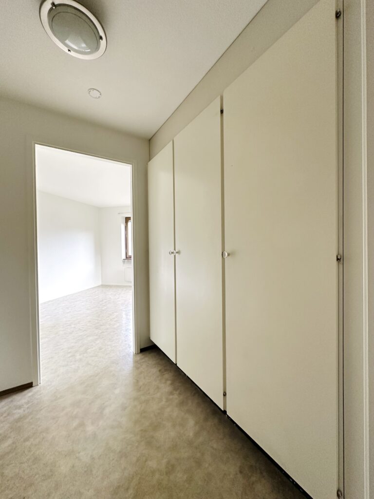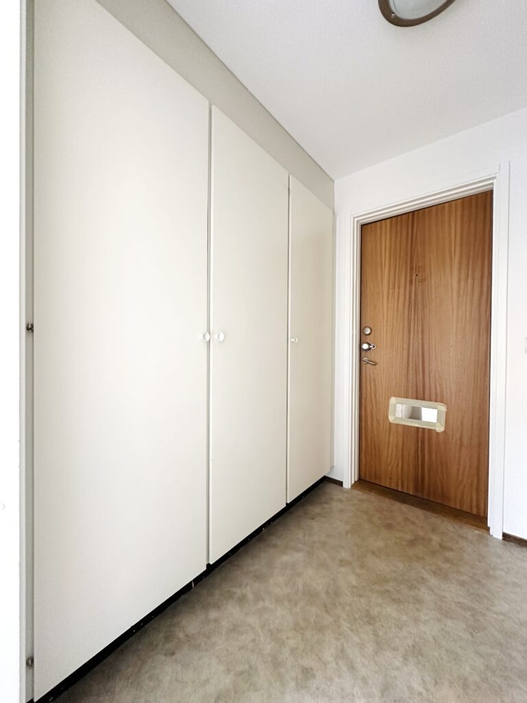 Lägenheten har flertalet stora fönster med gott om ljusinsläpp. Här finns även gott om förvaring i hallen.