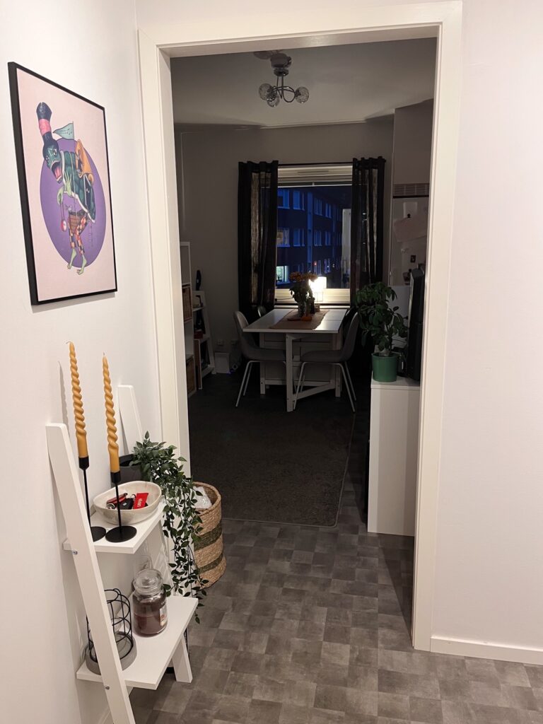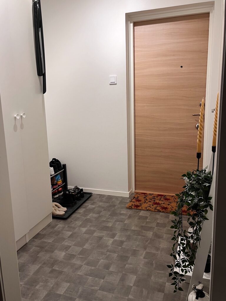 Här möts du av en ljus och välkomnande hall med gott om förvaring. Lägenheten är genomgående ljus med neutrala färger som gör det enkelt att inreda efter egen stil.