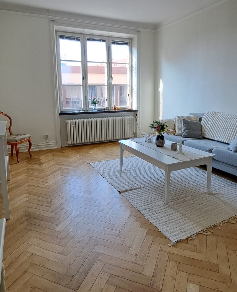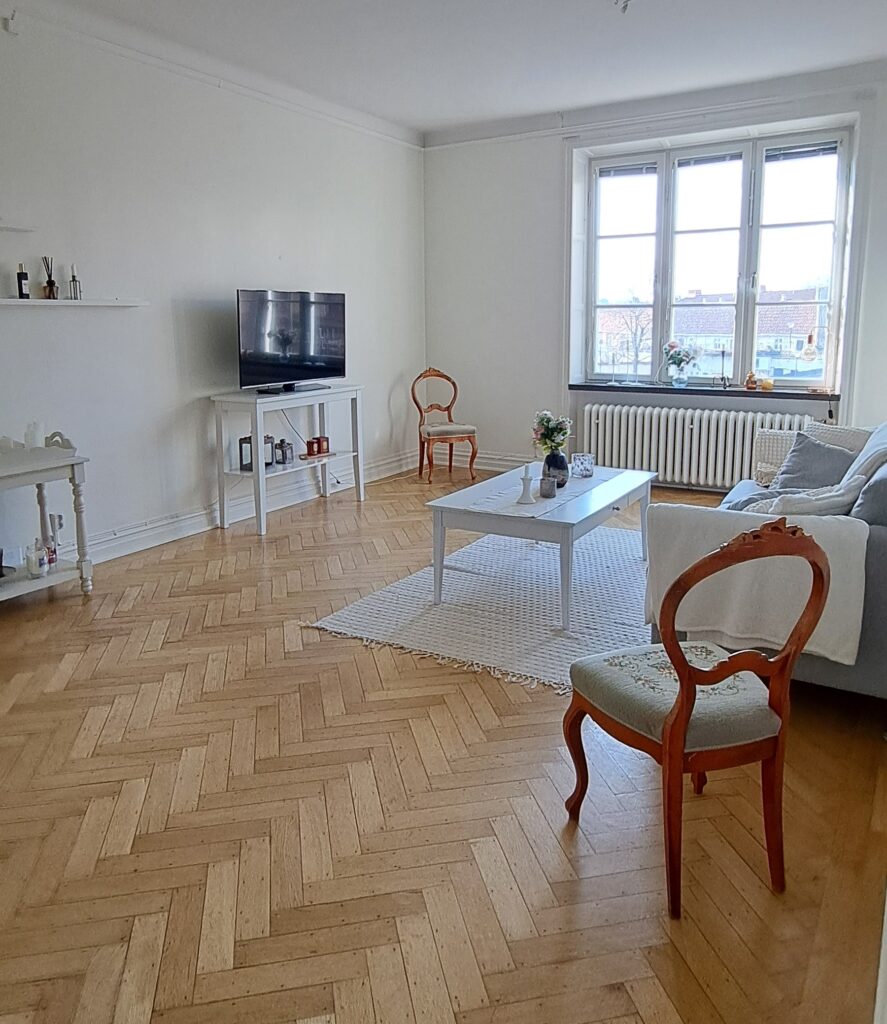 Sekelskiftes 2:a med stora fönster och fiskbensparkett – 63 kvm