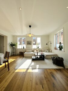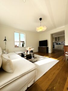 Här erbjuds en ljus och välplanerad 2 ROK på 55 m² i ett mycket fint skick. Lägenheten renoverades under 2021–2022 med fokus på moderna materialval, ljusa ytor och en genomgående stilren känsla.