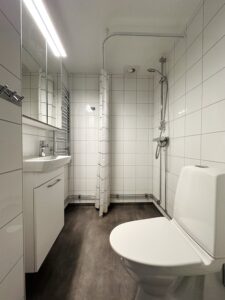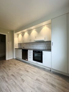 - Utrustat med kyl/frys, häll, ugn och diskmaskin