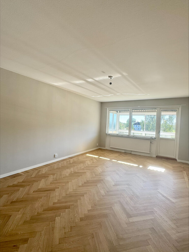 Lägenheten präglas av ljusa väggar och vackra golv, vilket skapar en luftig och inbjudande atmosfär. Här finns gott om plats för både vardagsliv och umgänge. Den inglasade balkongen ger dessutom ett extra rum att njuta av – året runt.